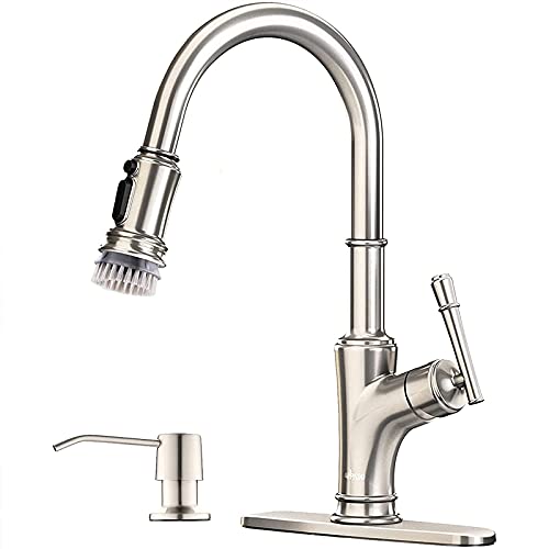 APPASO Pull Down Kitchen Faucet with Sprayer Stainless Steel Brushed Nickel - Single Handle Commercial High Arc Pull Out Spray Head Kitchen Sink ...