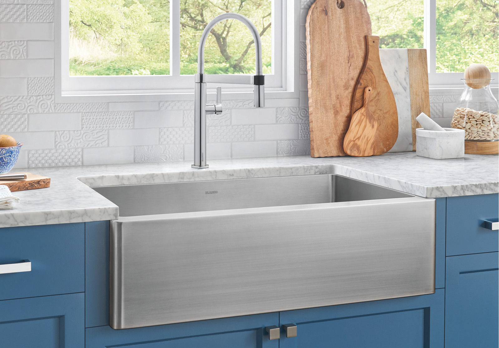 Blanco quatrus super single bowl. QUATRUS R15 SUPER SINGLE APRON | BLANCO QUATRUS R15 SUPER SINGLE APRON German engineered with 304 series, 18-gauge stainless steel Practical 15 mm radius corners for easy cleaning Extra-large bowl with an ultra-durable apron front is ideal for active kitchens X-pattern drain grooves quickly remove water from the sink 18/10 chrome-nickel content for exceptional lustre and strength BLANCO 524221 Quatrus Stainless steel 1-Hole Drop-in or ... This item: BLANCO 524221 Quatrus Stainless steel 1-Hole Drop-in or undermount Single Bowl Kitchen Sink, 33" L x 22" W x 9" D, Satin $652.61 Usually ships within 3 to 5 weeks. QUATRUS R0 SUPER SINGLE | BLANCO QUATRUS R0 SUPER SINGLE | BLANCO QUATRUS R0 SUPER SINGLE German engineered with 304 series, 18-gauge stainless steel Zero- radius corners; X-pattern drain grooves Extra-large bowl size is ideal for busy families 18/10 chrome-nickel content for exceptional lustre, durability and strength Undermount installation Color options DXF / Specs Blanco 401518 Quatrus R15 U Super Single Kitchen Sink Blanco 401518 Quatrus R15 U Super Single Kitchen Sink. $ 1,012.00 $ 659.00. CAD. USD. Undermount Sink. German engineered with 304 series, 18-gauge stainless steel. Practical 15 mm radius corners for easy cleaning. X-pattern drain grooves quickly remove water from the sink. Extra-large bowl size is ideal for busy families.