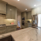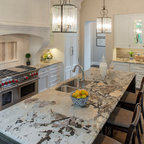 11 Modern French Country Kitchen Ideas - The Spruce Grace Hill Design, based in Wayzata, Minnesota, reinvents French country style in this cooking space using neutral colors, natural textures, and decorative accents that resemble a modern farmhouse look. Over the kitchen island are three pendant lights. Covering the marble-topped kitchen island are white shiplap boards.