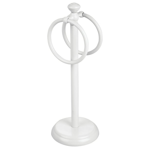 mDesign Steel Towel Rack Holder Stand with 2 Hanging Rings for Bathroom Vanity Countertops - Space Saving Hand Towel Holder - Hyde Collection - White