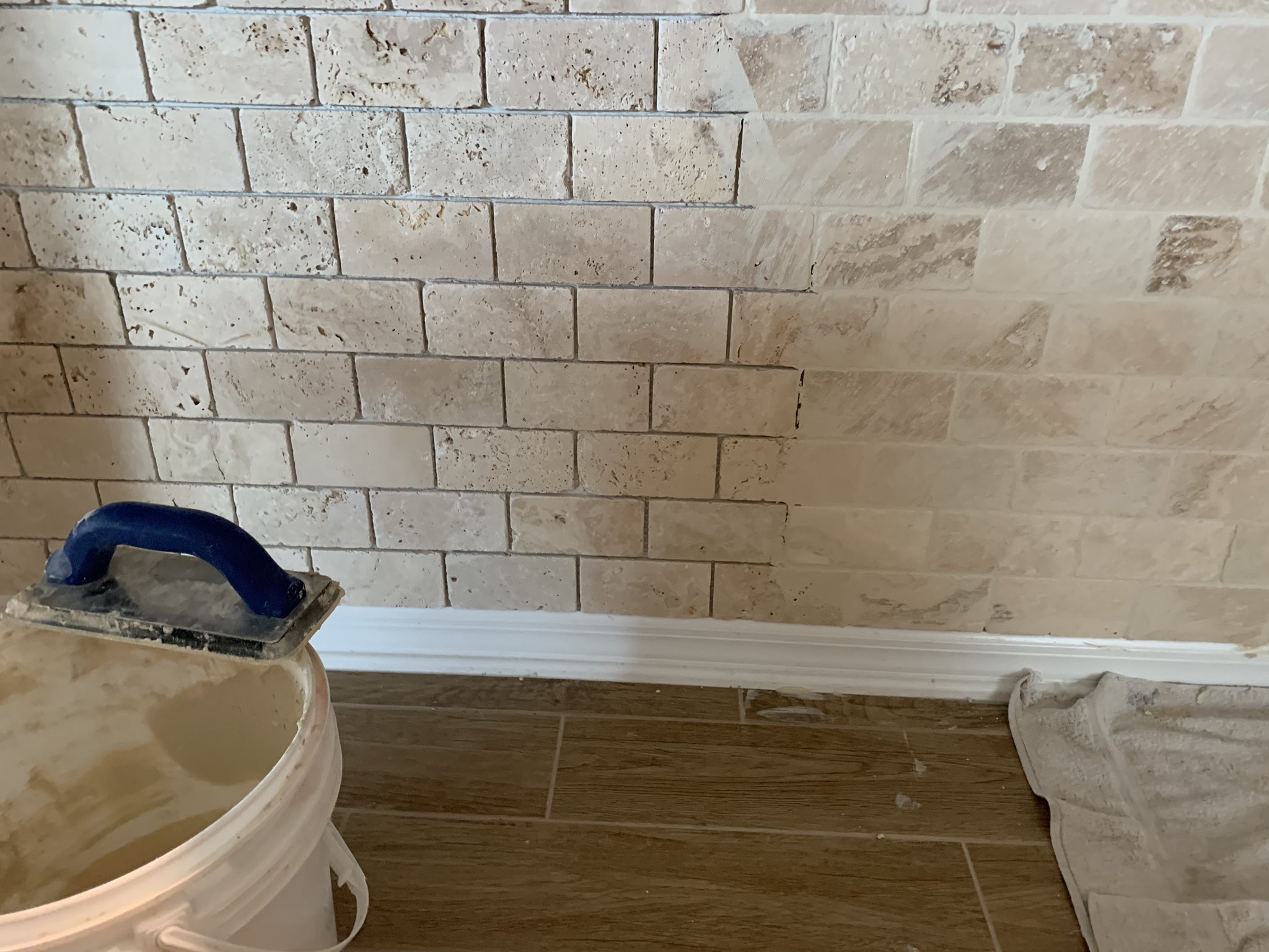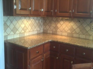 Tumbled travertine tile backsplash
